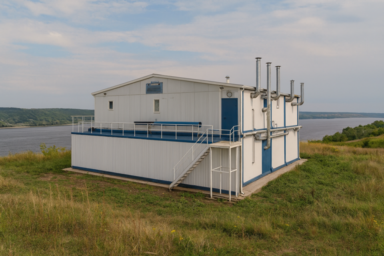 Финальный резервуар для аккумуляции очищенной воды, обеспечивающий контроль ее качества и регулируемый сброс в водный объект. Позволяет проводить окончательный отбор проб и гарантировать соответствие стоков установленным нормативам перед выпуском в окружающую среду.